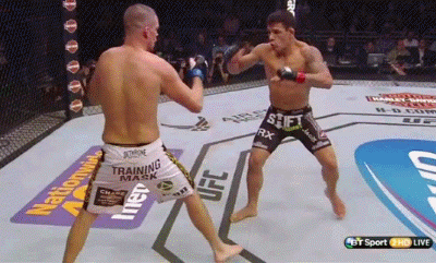 (Aldo broke his foot here because Jung moved into it with the check, which led to Aldo having to grapple more afterwards for the rest of the fight)And of course, some fighters aren't as good as checking leg kicks as others. Outside of a poorly set up kick from Pettis, this is how it usually looks when Diaz tries to check kicks.