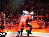 Match 2- Inferno match for the European Championship- Kurt Angle vs Kane highlights- The ring was surrounded but fire, both men were ready to go to hell. Kurt Angle tried to sneak in a few moves on Kane but with his strength, he revearsed all of them into an even stronger move. Kane mostly dd big moves so the flames grew more and more. The match turned to angles side when Kane tried to go top rope but angle belly to belly suplexed him off making the flames go to ts full potential. Angle used german supplexes and clotheslines to keep kane down. The highlight of the match was when Kane chokeslammed Angle but it looked cool, it was slow motion and a little dark then when it was hit, the flames grew. The match ended when Kane dragged Angle to the ropes, he took too much time so he had to let him go, so when he did, Kurt took the oppotunity and put Kane on FIRE!