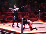 Match 3- Raven vs Mick Foley highlights- Raven and Foley put on the best match of the night, but with a terrible ending, but we will get to that later. Raven started off the match with chair shots on his opponent Foley. The chair was then out of use, but that didnt stop Raven from getting another one. As he came back to the ring, Foley took the chair off him and smacked it over his head. Foley would take control of the match targetting Ravens head. He would use numerouse of weapons such as ladders, kendo sticks and Trash Cans. Raven revearsed a kendo stick shot into his own. Raven would taunt Foley time and time again. Raven got out a ladder, but foleys skill came too action as he hit a comeback. Foley kept targetting Ravens head eventually making him bleed. The highlight of the match was when Raven ran up a leaning ladder and punced on Foley. The match ended when Foley kept chair shotting raven in the head putting blood on the chair. Ravens face was covered with blood. foley picked him up then hit him with his finisher for the win. 1....2...3 WINNER- Mick Foley cutscene- Docters began running to the ring with a stretcher, Raven was lying down, the docters put him on the stretcher and took him away. WHAT. RAVENS INJURED. BUT WHAT ABOUT THE TRIPLE THREAT LADDER MATCH AT EXTREME RULES. THIS CHANGES EVERYTHING.