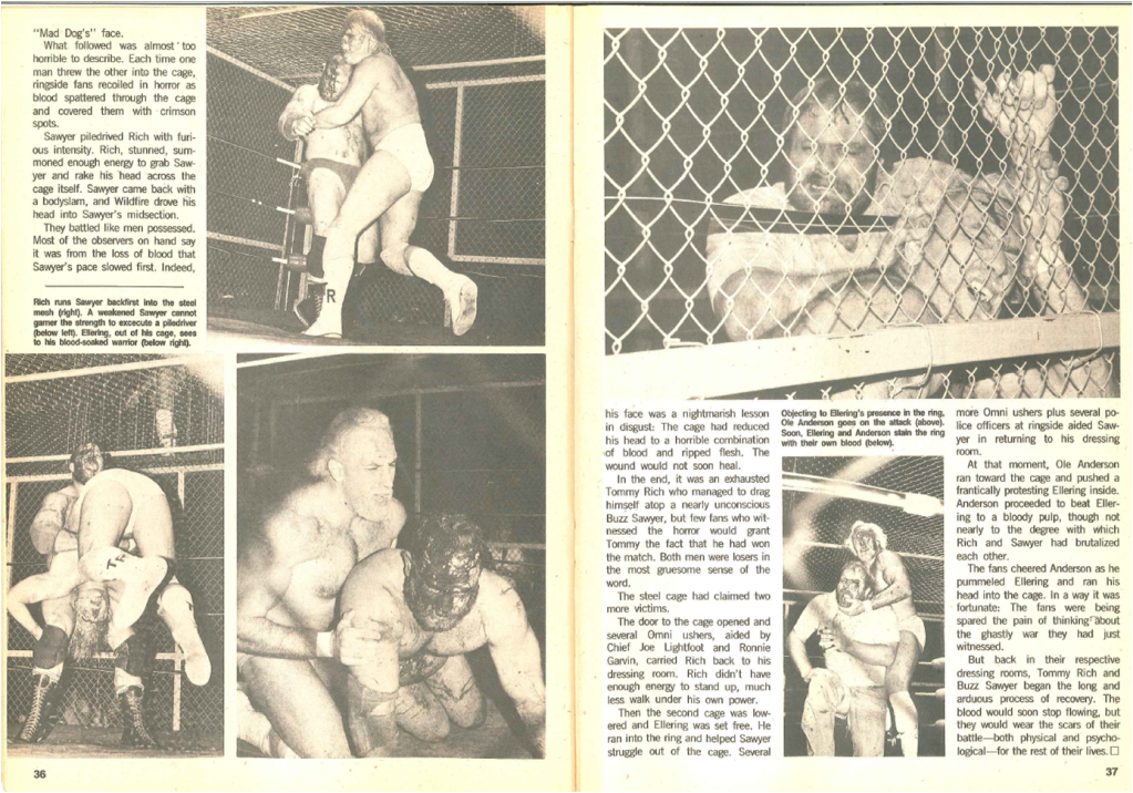 The Last Battle of Atlanta is a cage match between Buzz Sawyer and Tommy Rich with Paul Ellering suspended above the ring in a small cage, think a smaller version of Hell in a Cell. I've always read that no footage of the match existed.