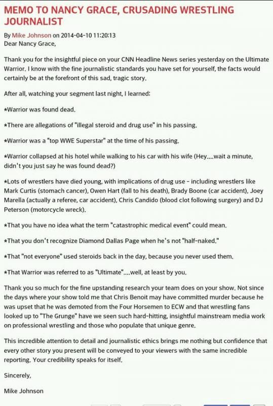 PWInsider Mike Johnson's letter to Nancy Grace.
