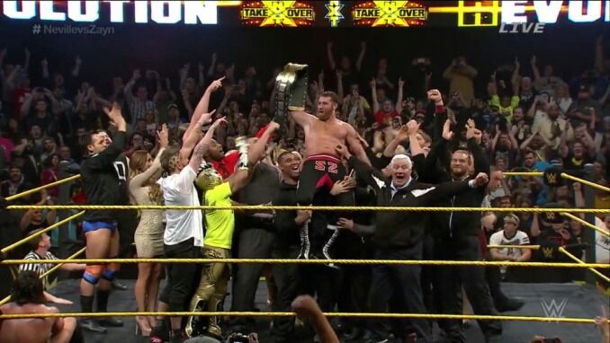 Dec 11th, 2014 at NXT Takeover: R Evolution. The debut of Kevin Owens against CJ Parker. On this same show, Sami Zayn challenged Adrian Neville for the NXT Championship. Zayn promised to quit NXT if he didn't win the title, Zayn went on to win the title and the roster came out to congratulate him. It was what Owens did after the match that had everyone talking.