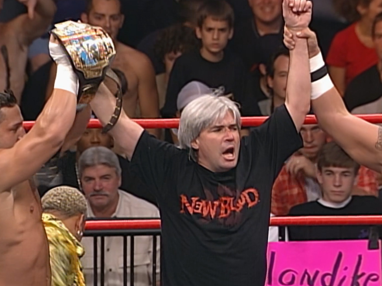 Eric Bischoff wins the hardcore title (against hardcore legend Terry Funk)