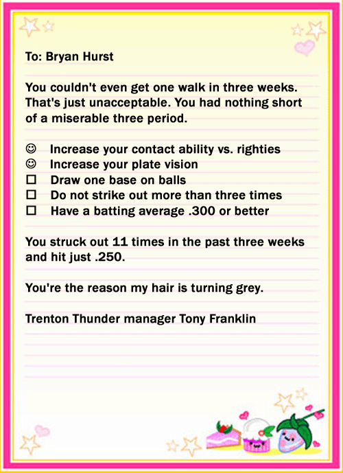 ^^^ He knows every young man wants to hit a homerun every time he's up there. Not take a pitch, moreover 4 pitches.