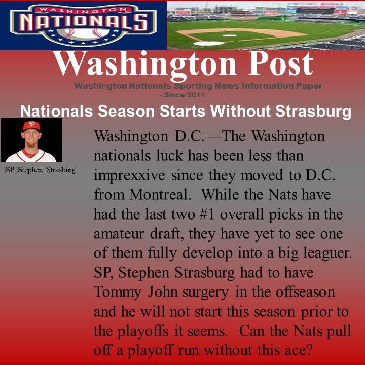 4/10/2011--The Washington nationals are on fire! The nationals have won 7 of their first 9 games and lead the NL EAST. Jason marquis (2-0) was able to hold his own against the Mets, going 6 dtrong innings and allowing only 1 run. Danny Espinosa had an RBI in his 4th straight game. The Nationals ahve tomorrow off, and then travel to Philadelphia where the Phillies have been having thier issues as of late.