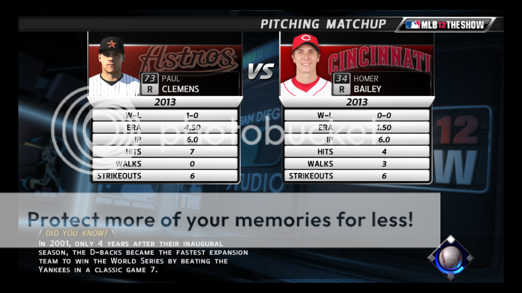 There's the pitching matchup in this game, as mentioned above Clemens vs Bailey. This game was scoreless until CarGo runs into one from Bailey and gives us a lead.