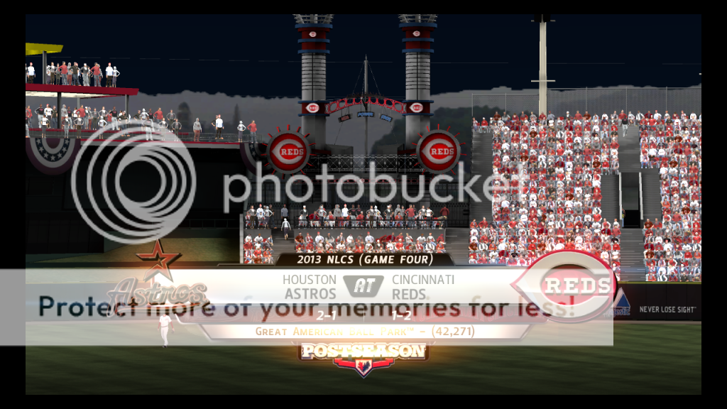Game 4 in Cincinnati and it is a packed house once again. If there's one thing I respect about the Reds (and yes I do respect something about these bums) its their ability to fill the stands on a consistent basis.