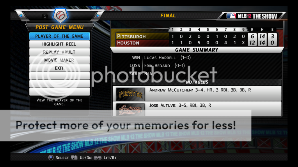 3-2 after Cutch trots real slow like around the bases. Too bad he won't get to swing the bat the next time he faces Milk Carton, just saying. Harrell allowed 1 more run in his 6 innings of work. He had 6Ks, 2BBs, and 10 hits allowed. Kinda lucky it wasn't more honestly, but its something to build on. But the story today was the offense. We struck for 5 runs in the 4th inning, and 4 runs in the 7th to put this one out of reach. We got HR balls from Juicin' Maxwell and A-Gon (our A-Gon at least.)