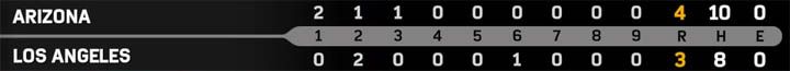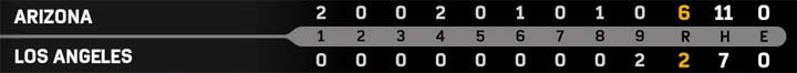 Los Angeles, CA (AP) – The Arizona Diamondbacks extended their winning streak to four games on Tuesday evening with a 6-2 victory over the Los Angeles Dodgers at Dodger Stadium. The win kept the Diamondbacks just two games back of the San Francisco Giants in the National League West.