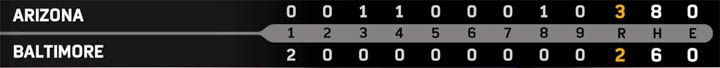 Baltimore, MD (AP) – The Arizona Diamondbacks kept the train rolling on Sunday afternoon as they rallied for a 3-2 victory over the Baltimore Orioles at Oriole Park at Camden Yards to complete the three game sweep. Ketel Marte broke a 2-2 tie in the top of the eighth with a bloop single to right, that scored Jean Segura. Segura had reached on a two-out single and then stole second to setup Marte for the heroics.