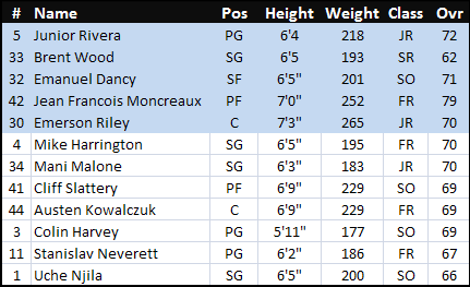 Stanislav Neverett was another one of the extra signings due to the players leaving after last season. Colin Harvey's lack of size hurt him last season against bigger opponents, so look for Neverett to get some playing time for defensive purposes against teams that have more size and talent.