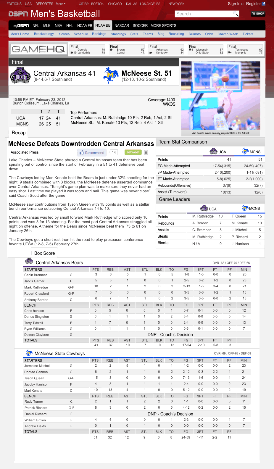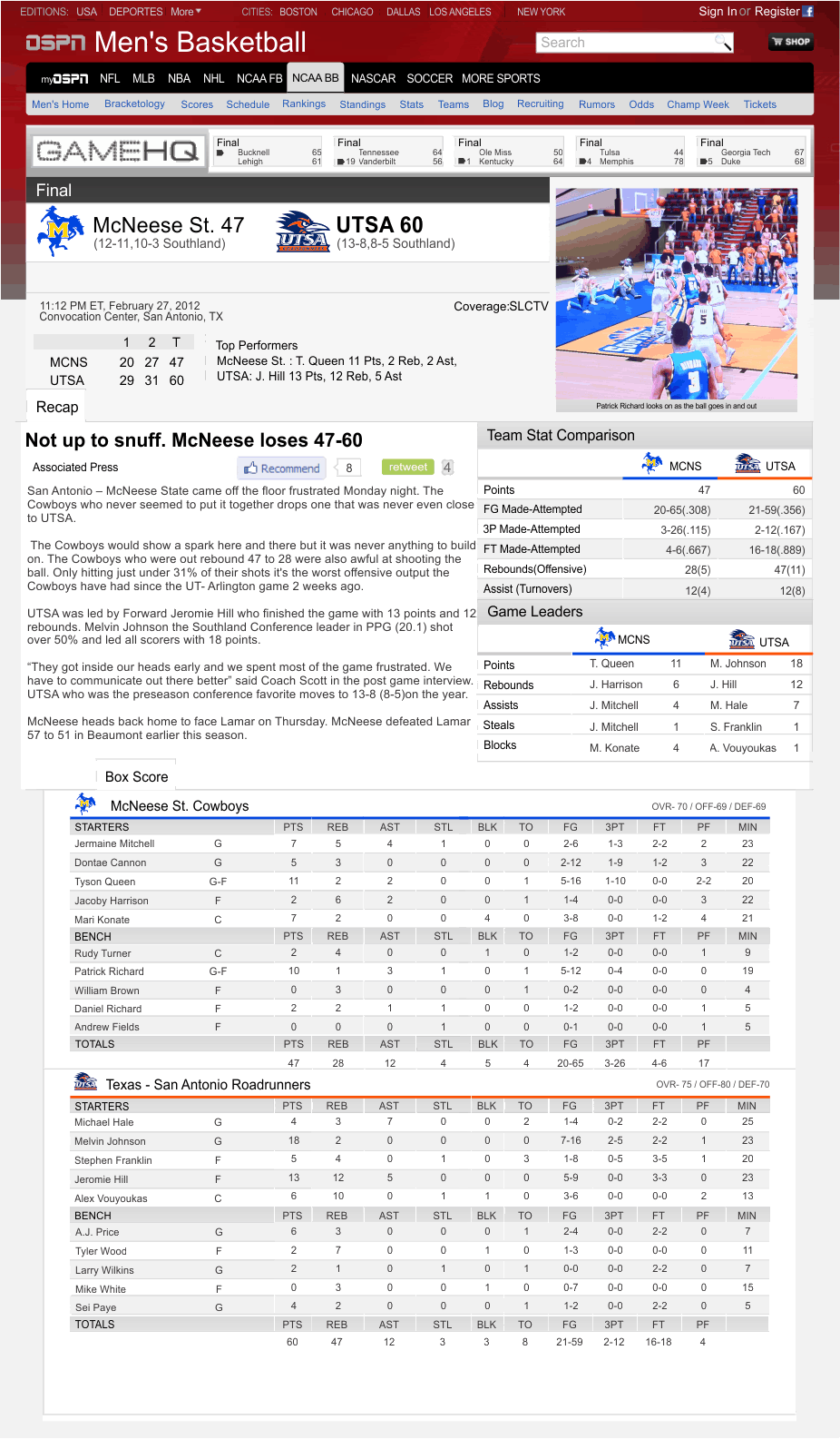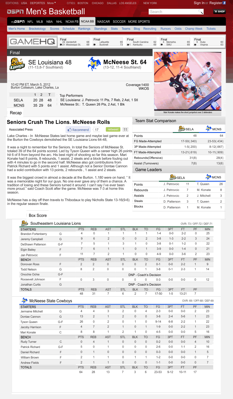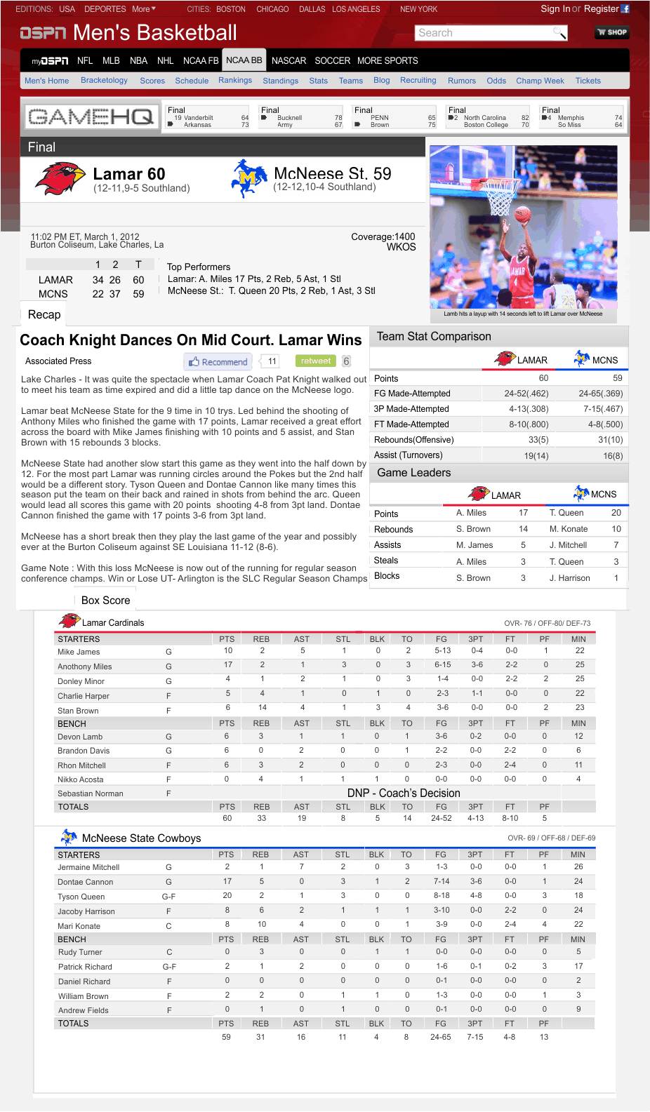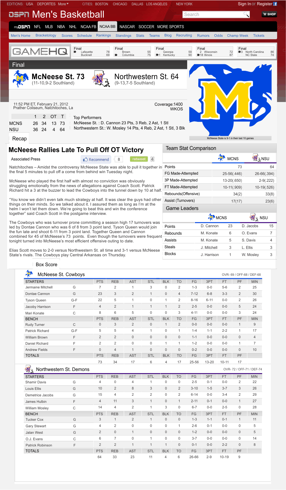 Great comeback there against the Demons. And I need to repeat what has been said before....the ESPN sidebar stories are awesome.Comment