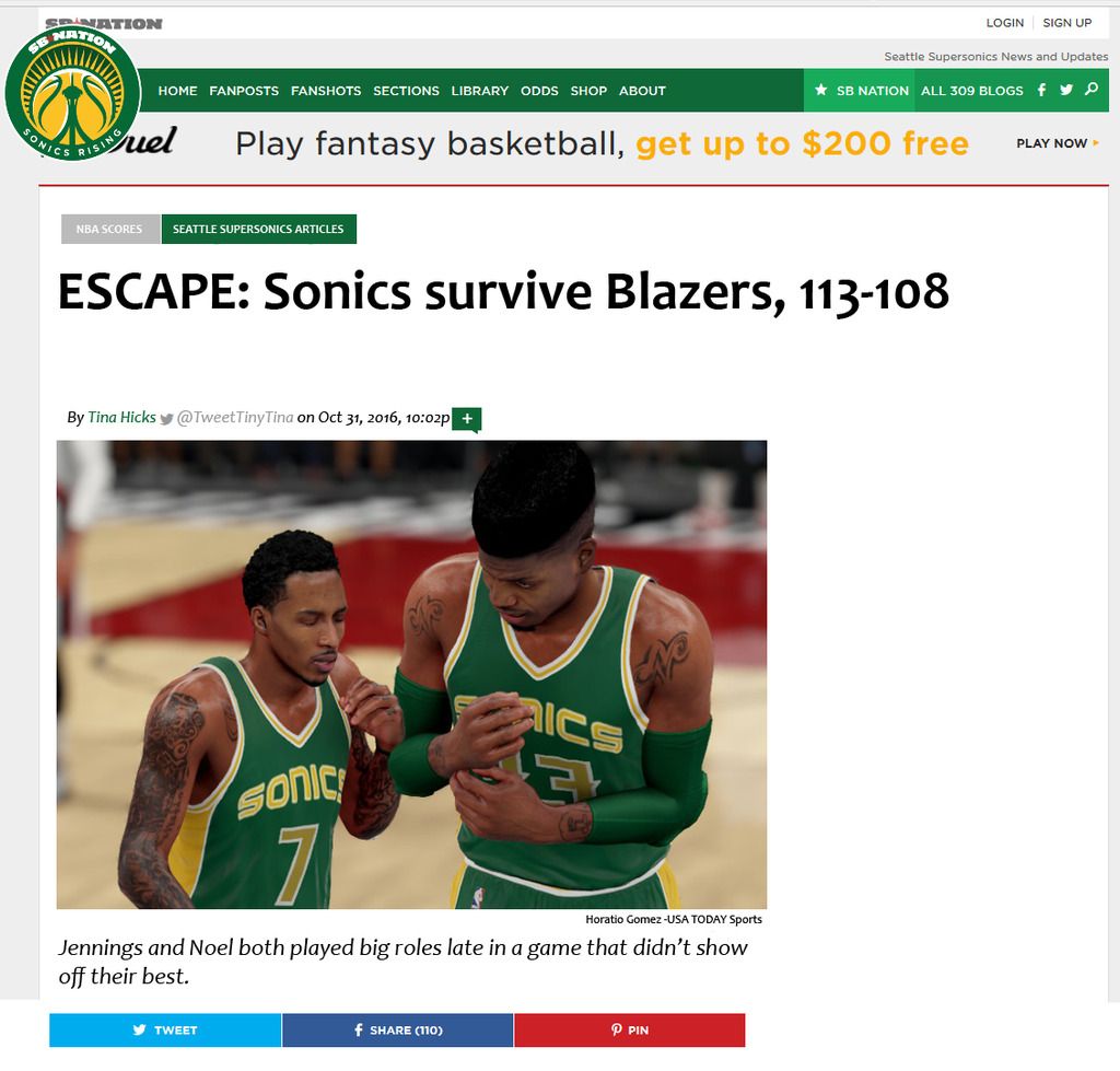 That was the end for the Blazers and they now fall to 1-2 on the season, as Seattle moves to 4-0 (beating the Grizzlies, the Lakers in back-to-back games, and now the Blazers). They face the Jazz tomorrow night before taking a day off and resuming play again at the PAC against the hated Thunder.