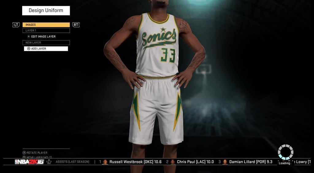 I'm not sold on the uniform editor in game. I've spent countless hours trying ideas but they forever look like cr@p even trying to recreate current jerseys. It must be something in the rendering on the game but I really do like how your idea is looking. The sonics logo is fantastic. Look forward to seeing the finished product
