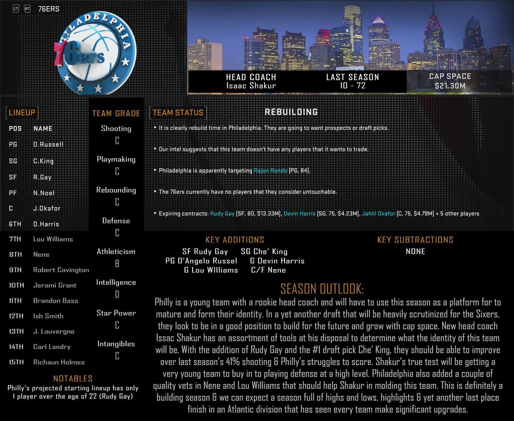 Matt Winer: That’s another argument for another day. When we return… Can Che` King, a rookie coach and a team loaded with players under 25 take a step out of the cellar? We’ll talk former Sixer Tyrone Hill who will be training with the Sixer big men this summer.