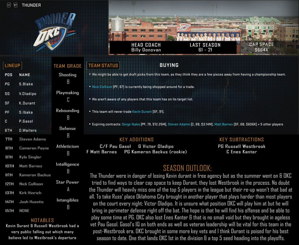 Brent Barry: And to extend a bit on what 3D is saying; people are also forgetting that Westbrook is on an option as well this year. Albeit a team option; this team has some real decisions to make. They’re not a big market team and getting a star to come here to keep up the level of play that this team has achieved is gonna be hard to do without Durant on this team.