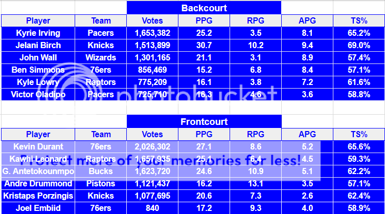 2. Kevin Durant, 76ers | 29.8 | 2. Kevin Durant, 76ers | 11.3 | ||