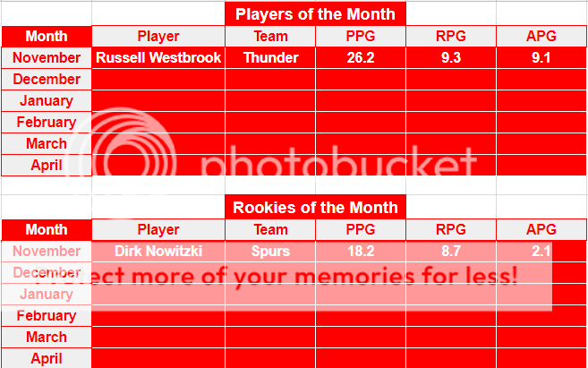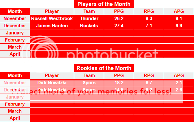 2. Kevin Durant, 76ers | 28.7 | 2. DeAndre Jordan, Mavdericks | 12.3 | ||