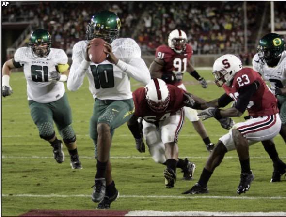 Oregon pulled the starters after the 3rd quarter ended, and even then, had to take the foot off the gas. At one point midway through the 4th, backup QB Brady Leaf took a knee on four straight snaps inside the 10 yard line, as Mike Bellotti made the decision to not humilate the Wolverines anymore than they already had.
