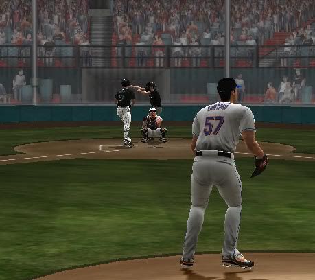 Jermaine Dye pops out to Cantu in his first Met AB to end the inning