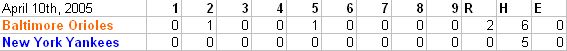 W: Jaret Wright (1-0) L: Erik Bedard (0-1) SV: Mariano Rivera (2)