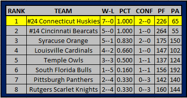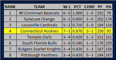 Connecticut falls to 7-1 on the season, and will most surely drop out of the Top 25. The Huskies will have a bye week next week and will head to Tampa Bay to take on South Florida the week after.