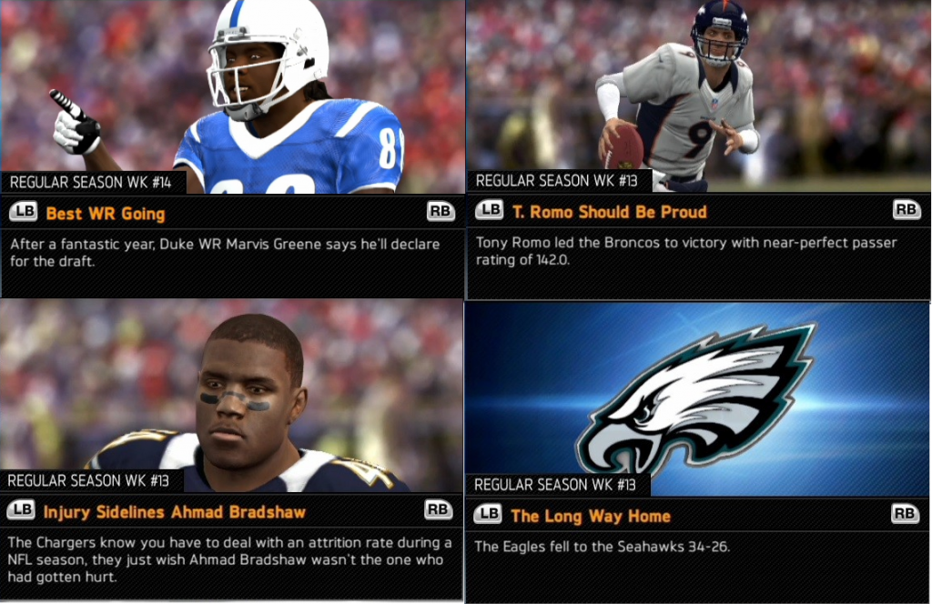 I had got away from this thread for awhile but while on vacation I finally got caught up, however I find this so unrealistic that I am shocked. Do you use 30 team control? If you don't then it would explain how some of the things have happened. Like for example tell me how the Buffalo Bills don't try to sign Fred Jackson and CJ Spiller and let them both go via free agency in the same off season. That would NEVER HAPPEN!!!!! I am glad to see that CJ is running good for you and that Tom Brady isn't going to re-sign in Cleveland cause that is a horrible place for one of the greatest QB's of all-time.
