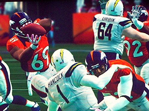 Wallace followed the second half kickoff with a 32 yard run, Ball got 9, fullback Trevor Austin converted the second and 1, then Wallace went for another 21 for a 1st and 10 at the San Diego 16. But there were no more big plays in that drive, nor first downs either, and that red zone trip ended with a field goal that expanded Denver’s lead to 15-10. The teams then traded field goals, with Prater’s next kick coming after a third down Sack of Bray. In that series, Hunter made his first reception since his TD catch. San Diego punted out of its next possession, and with 5:21 left in the game, Prater drove a 52 yard boot through the uprights to give the Broncos an 8 point lead, and as things turned out, the kick proved to be a game-winner. The Bolts rose to the challenge, or almost did, answering with Hancock lofting a 25 yard TD pass to Kenny Britt. But Smith came through with a sack on the try for 2, and with 3:46 to play, San Diego kicked away, hoping for a quick stop followed by a drive to a game-winning kick (or better). With Wallace dropping a pass on contact, Denver was forced to punt and the Bolts’ comeback opportunity came at their 24 with 1:43 and two time outs left. Three plays later it was 4th down, and an incomplete Hancock pass resulted in a turnover on downs. This time, the Broncos were able to run out the clock to seal the win.