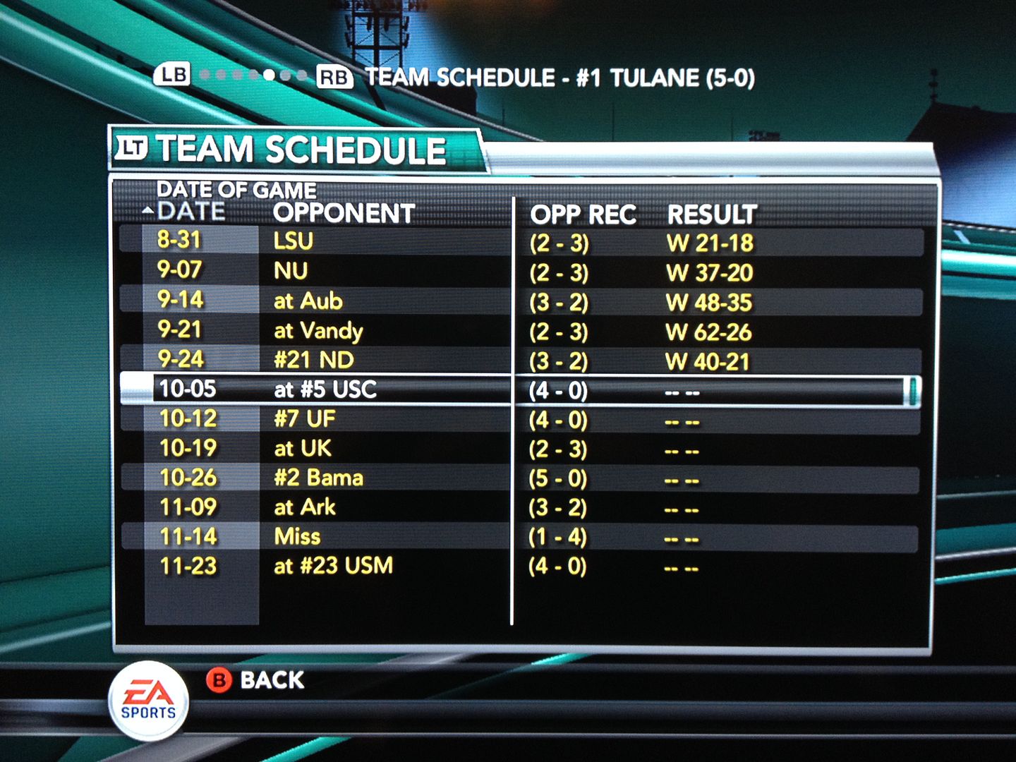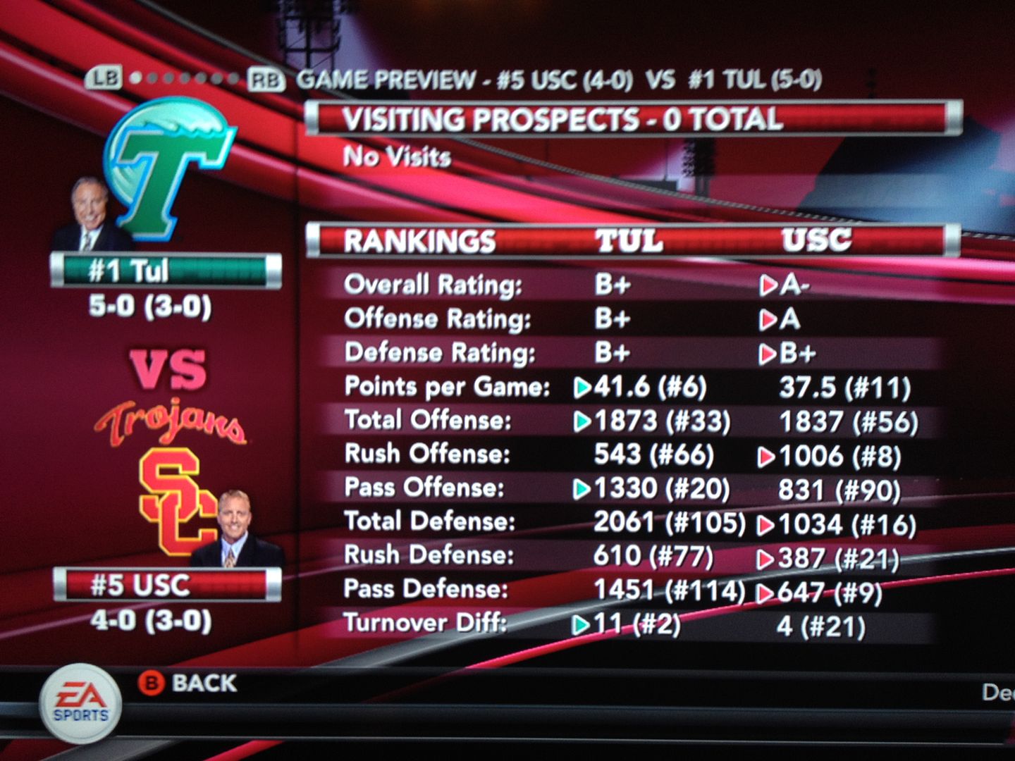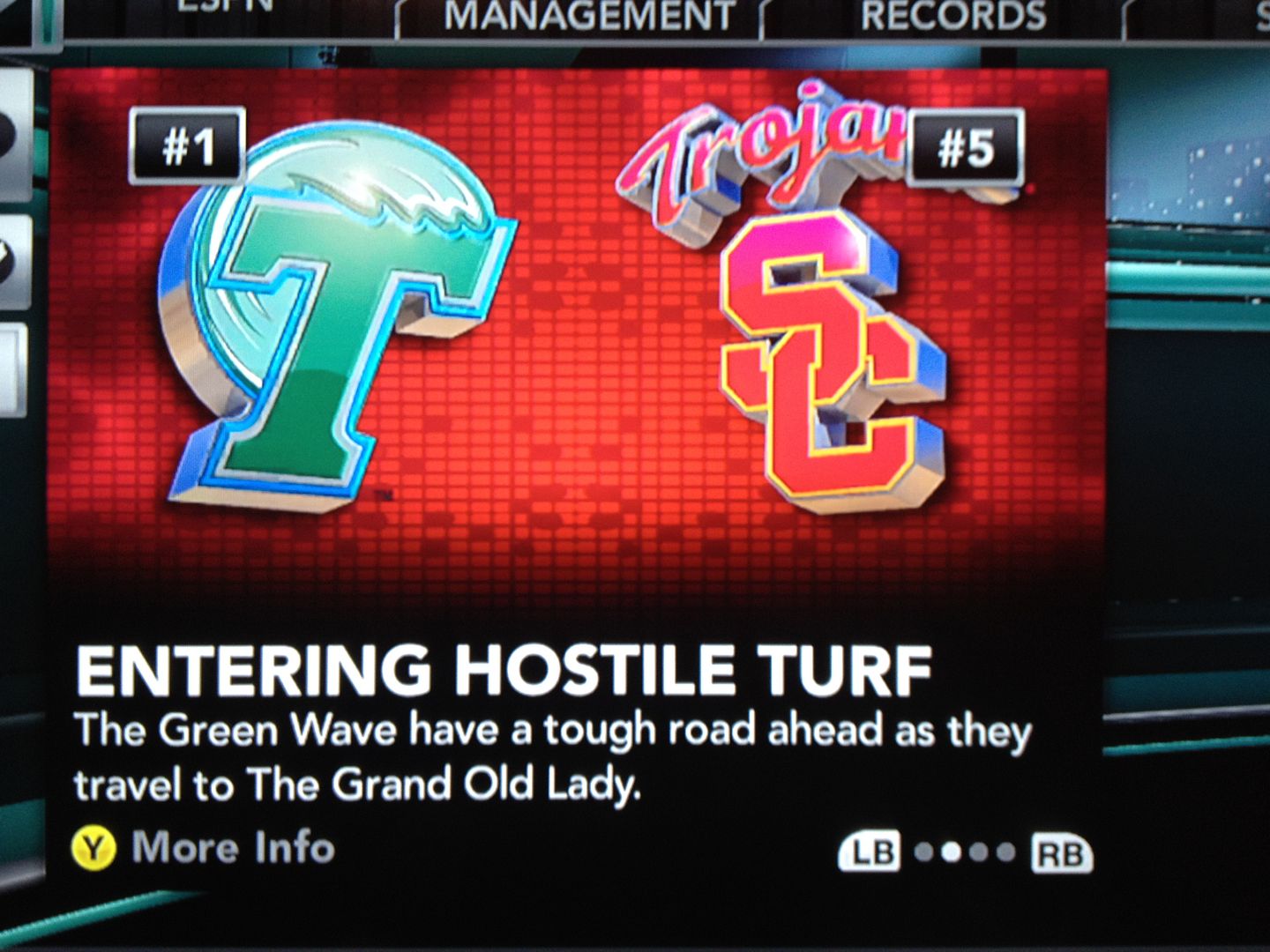 I'm really looking forward to this game, and hearing the Trojan march song. This is one of those historical venues in college football and I am sure it will be surreal watching/playing with Tulane in such a meaningful game in that building, similar to our Florida State game in the last season prior to this new story line.Click here to read my dynasty report: