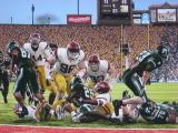 Later, with 1:10 remaining before the halftime break while holding onto a 14-9 lead, the Irish faced a 4th and inches from the Tulane 48-yard line and lined up to punt. However they decided to snap the ball to their personal protector upback, RB Carl Wheatley, who would be stuffed behind the line of scrimmage for a 1-yard loss, turning the ball over on downs to the Green Wave.