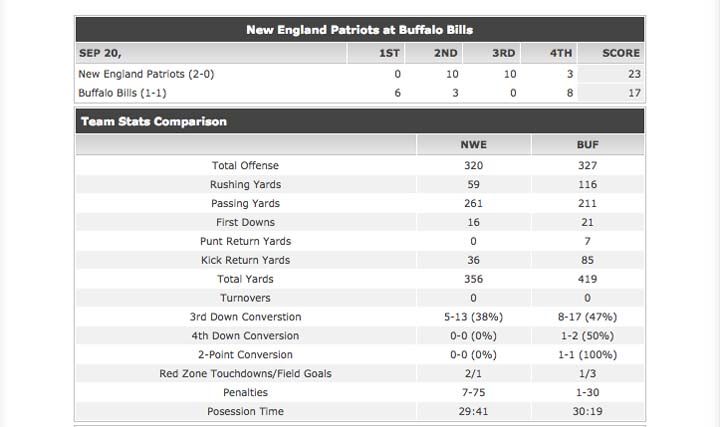 Sept 20, 2015: Patriots 23, Bills 17