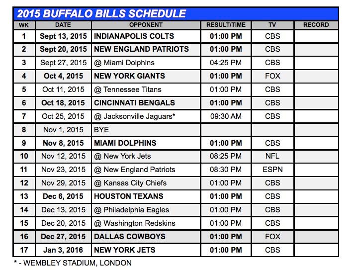 BUFFALO BILLS RESULTS: