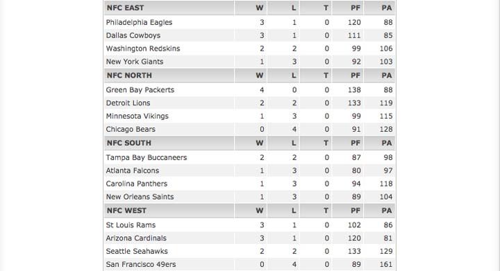 With the NFL trade deadline approaching, we have a look at the league standings.