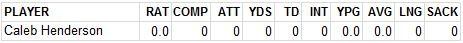 • Caleb Henderson entered the game early in the fourth quarter after Poinsette and Harris rotated between teams periodically. Henderson completed his first pass before throwing an interception, returning to the field on the ensuing possession only to be sacked consecutively. Henderson, at 160-pounds, did not return to the game.