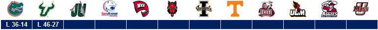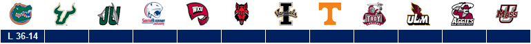 The Ospreys opened their second-year campaign against now-No. 3 ranked Florida at the Ben Hill Griffin Stadium where Gators increased their home streak to nine wins following a 36-14 win over UNF. The Ospreys had a share of offensive woes, committing three turnovers while adding just 26 rushing yards on 26 carries. On defense, UNF showcased a pesky pass rush that amounted for a program high seven sacks, but the Gators' high pace offense was too much to overcome as they recorded 399 yards along with seven trips to the red zone.