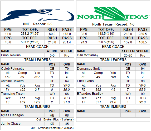UNF Ospreys (0-5) vs North Texas (4-0)