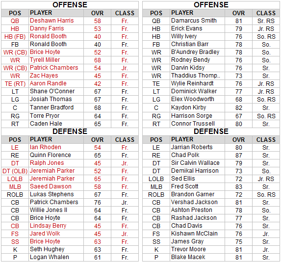 Note: The players not playing in this game was decided by a combination of citizenship and work ethic (those who may have not minded practicing so much) ratings that I generated at the season's beginning. The work ethic was an idea I got from Hellisan and his http://www.operationsports.com/forum...provement.html thread.Last edited by beast10; 02-20-2016, 09:28 PM.Comment