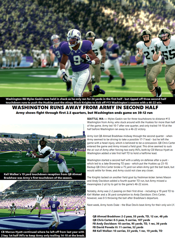 Season 2, Game 1: Army (0-0) @ #13 Washington (0-0)