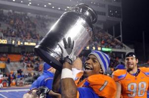 The "Milk Can" trophy will stay in Boise. The Broncos dominated the 1st half on both sides of the ball limiting the Bulldogs to just 4-1st downs and 128 yds of total offense well forcing 4 turnonvers (2 fumbles and 2 INT) on Defense, and the Offense exploded for 42 1st half points (42-0).