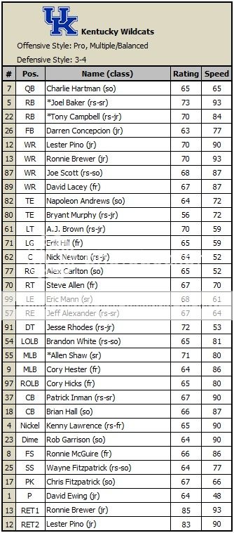 Head coach D. Geezy last faced Kentucky a year ago at Tulane, and speedy RB Joel Baker's 202-yard rushing effort nearly lead to the Wildcats pulling off an upset for the ages.