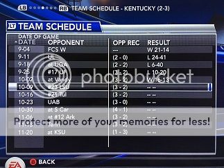 What a redemption story for your kicker. Pretty easy kick to make, but the pressure of end game never makes anything a gimme, especially after being iced by Florida *THREE TIMES*! Big win though, definitely a huge confidence booster for Mason, though he really needs to cut back on the turnovers. I guess that's the price you pay when you are as dynamic as he is and looking to make big plays, the ball ends up a little loose on occasion. Big win, and hopefully a springboard for 2 more wins before a nice test against Southern Miss before the real showdown with Alabama!Check out my Pitt Panthers Dynasty (NCAA Football 14)