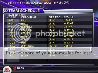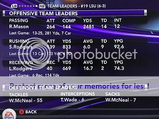 I like that you brought up the entertainment value of the Bama game. One of the things I am learning with this LSU portion of the dynasty report as opposed to the Tulane portion, is that even though my Green Wave earned their stripes and earned their way back into the SEC, playing with the Tigers now makes you realize just how much more intense it feels playing with an actual, true and current SEC football school. I truly feel like I am playing in the huge games we see on Saturday nights on CBS. Don't get me wrong, I loved my Tulane games, but I must say that playing with LSU is a whole different deal.