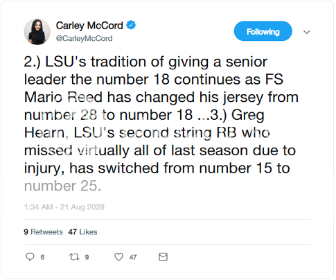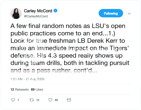 report courtesy Taylor Bisciotti, ESPN/SEC Network