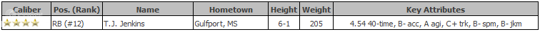 Jordan Hebert of LSUSports.net reports that LSU's 2029 recruiting efforts are off to a hot start, as the school received a commitment from 4-star RB T.J. Jenkins (6-1, 205, 4.54 40-time, #12 rated RB) this week. Jenkins, a Gulfport, Mississippi native, will add tremendous depth to the Tigers' backfield, and he could be a candidate to be the future replacement for current starting RB Scottie Rodgers (80 ovr) in a couple of seasons. He chose LSU over the likes of Texas Tech, Penn St., and Florida St.