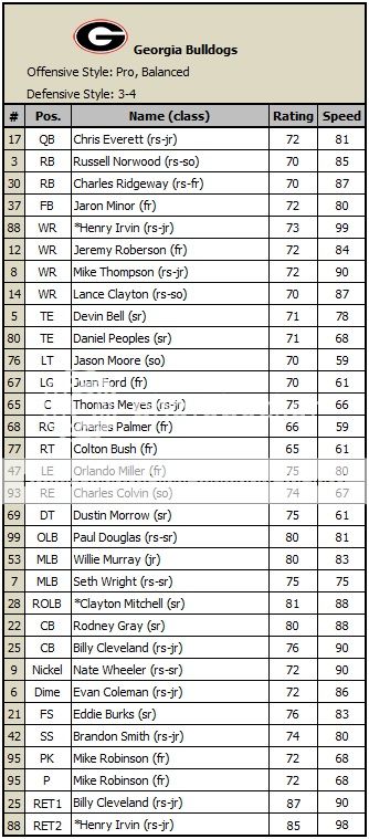 After giving up 45 points last game, it's going to be on the defense to set the tone in this one. LSU will absolutely need to focus on Georgia and not worry about Tulane on deck (more like Coach Geezy needs to not look ahead but I digress). Georgia's lineup looks like they belong in the Sun Belt, smh.My Dynasties