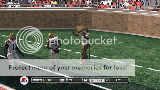2.) "Celebrate with the mascot." I had no idea that this was even a thing in this game. After scoring a touchdown in the first quarter, the game had a pop-up come up that said to celebrate with the mascot, so I ran over to the area where the mascot was and Rodgers started doing his camera pose thing with Mike the Tiger.