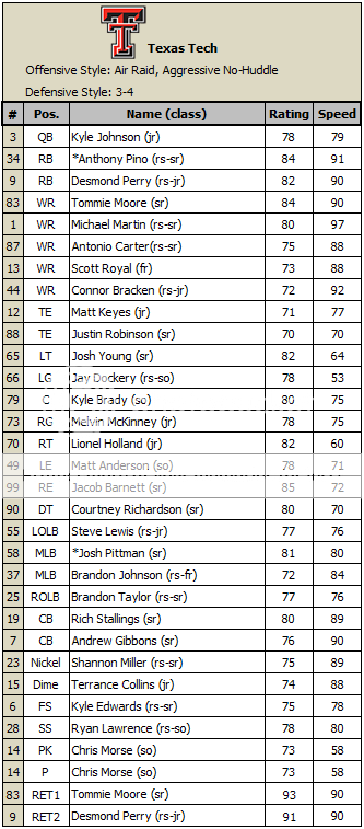 Honestly, I was concerned going into this one that we weren't going to be able to stop them. Our personnel at cornerback is lacking, plus in practice mode I had a tough time figuring out ways to stop the Texas Tech offense. I was getting torched no matter what defense was called.