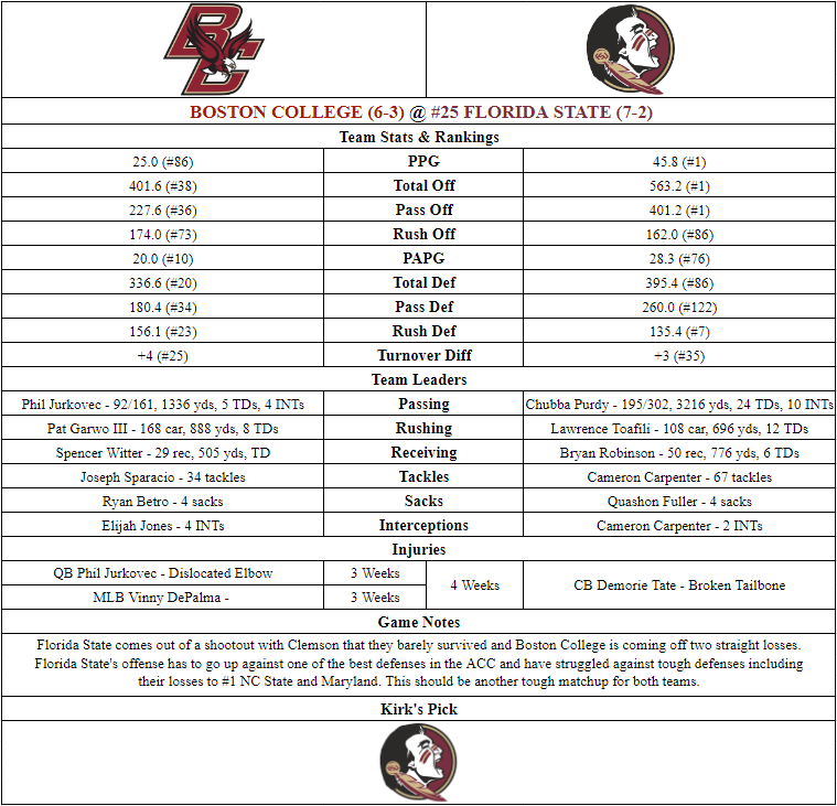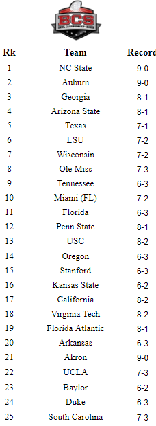 Boston College (6-3) fall short of the upset against #1 NC State (9-0) 27-24 in OT.