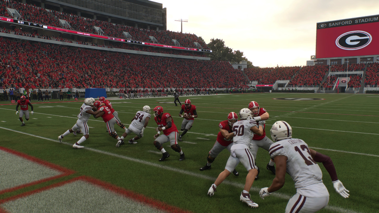 The Bulldogs jumped out to a 14–0 lead in the first quarter behind a 6-yard touchdown pass from Salako to Kalen Hurt and a dynamic 59-yard punt return touchdown by freshman Cole Soto. Mississippi State’s offense managed to move the ball in the second quarter, but a missed field goal and two short makes by Emanuel York were all they could muster despite a Georgia turnover in plus territory. Soto added a one-yard touchdown reception in the second quarter, and after the Salako interception, Georgia’s junior quarterback answered with a masterclass two-minute drill, capped off by a 2-yard touchdown run as the clock expired in the first half to give the Bulldogs a commanding 28–6 lead.