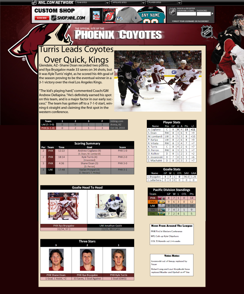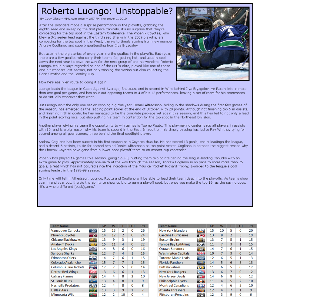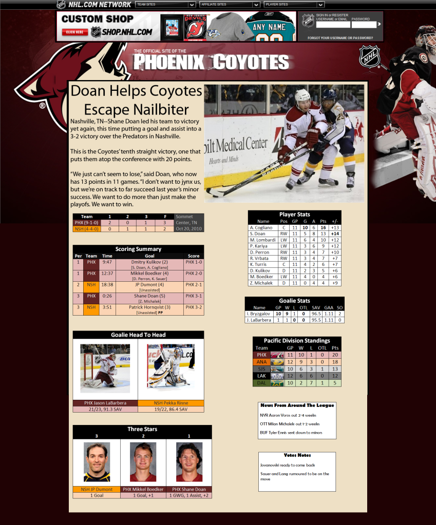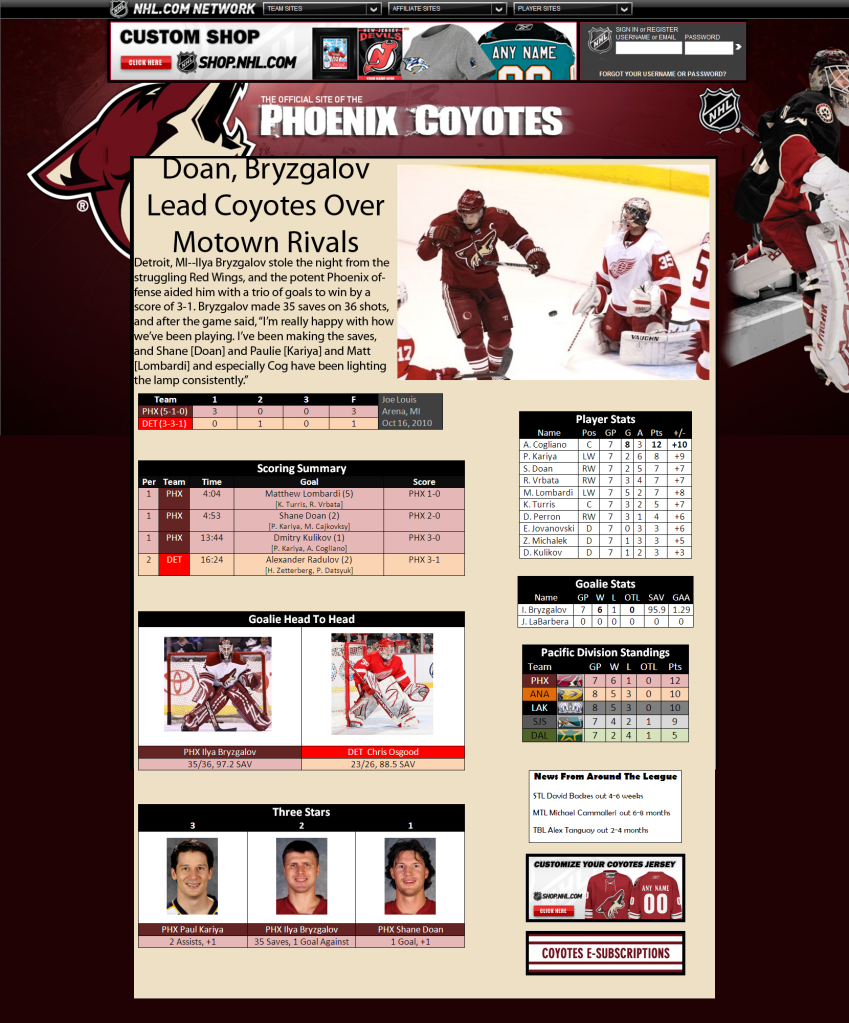 The past few games have been fairly close, but Bryzgalov has just been too good, and I manage to score on some fantastic plays. The games have been getting closer each time--last time I scored the second goal on an empty net, so it was really a one goal game.